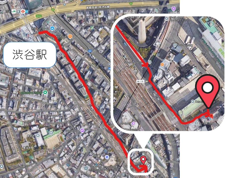 ② JR/東横線/田園都市線/副都心線/半蔵門線の「渋谷駅」から徒歩12分